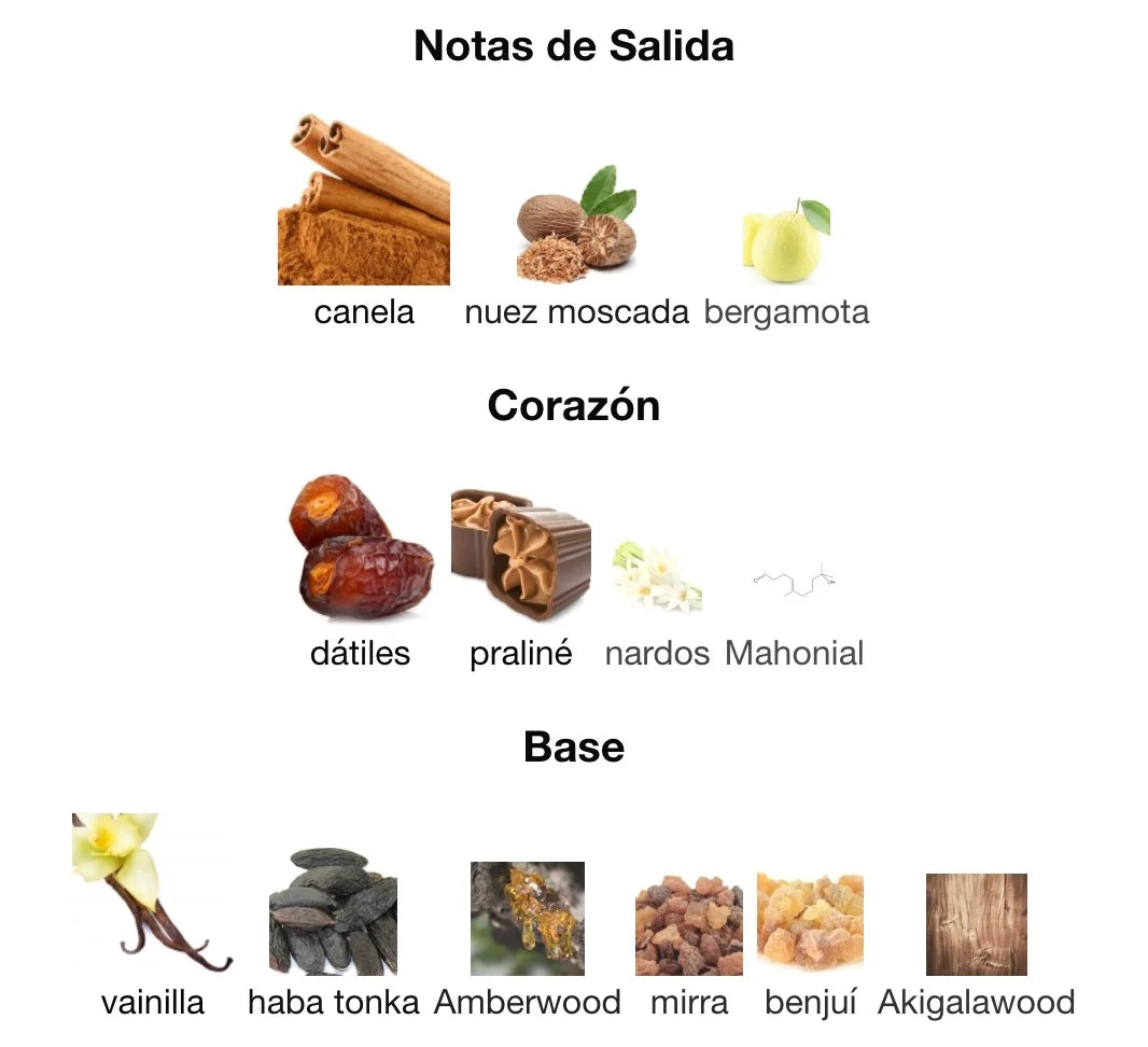 - Corazón: Dátiles, praliné, tuberosa.